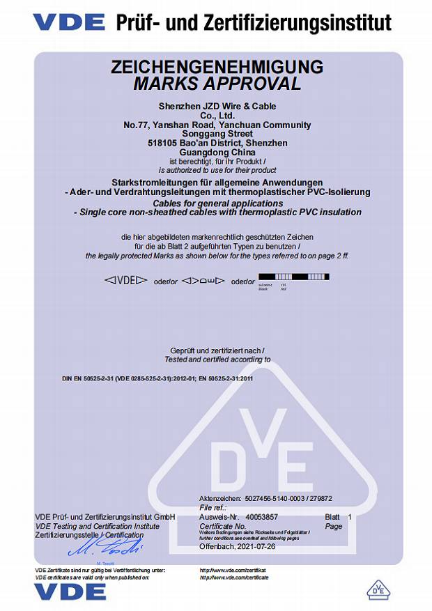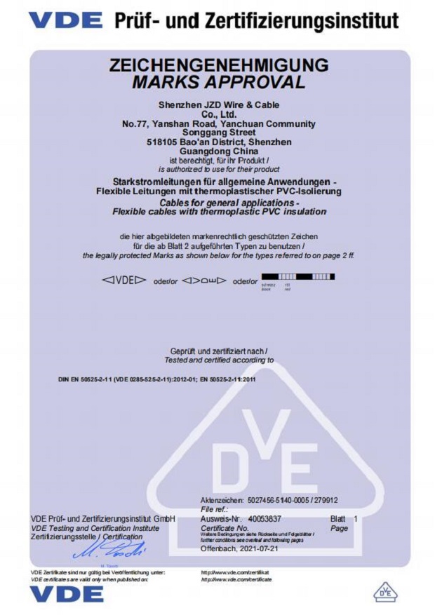德國VDE電線電纜資質(zhì)認證20210721